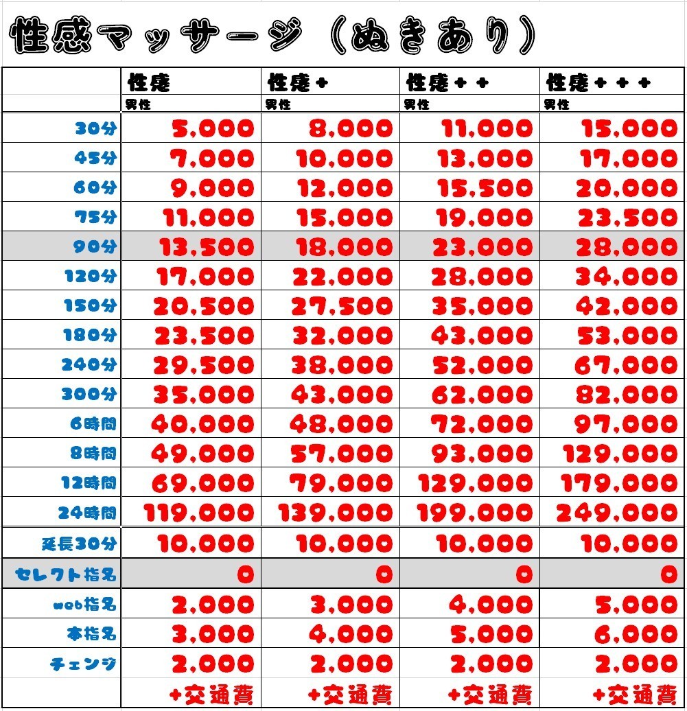 施術中追加オプションは、女性スタッフにより金額が異なります